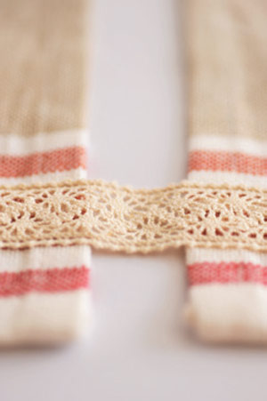 將兩片布結合時,可用蕾絲裝飾兼固定。