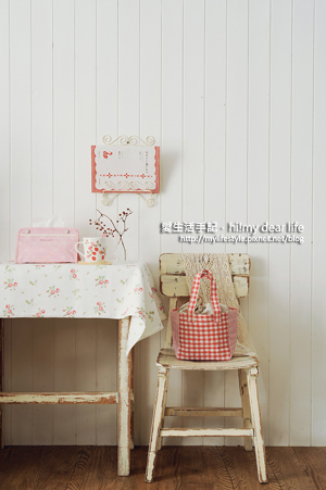 棉布材質的桌布、提包,以及蕾絲圍巾,搭配粉色、紅色系的杯子與面紙套,浪漫的色系與舒適的材質,絕對是少女最愛。