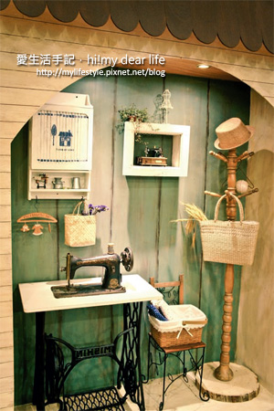 阿嬤不要的裁縫車和塑膠的浴室收納架,經由刷色和彩繪後,變成二樓櫥窗裡最亮眼的展示,刷色的時候建議一筆一筆耐心上色,之後再加上彩繪圖案時,才不會讓明顯的刷痕壞了物品質感。